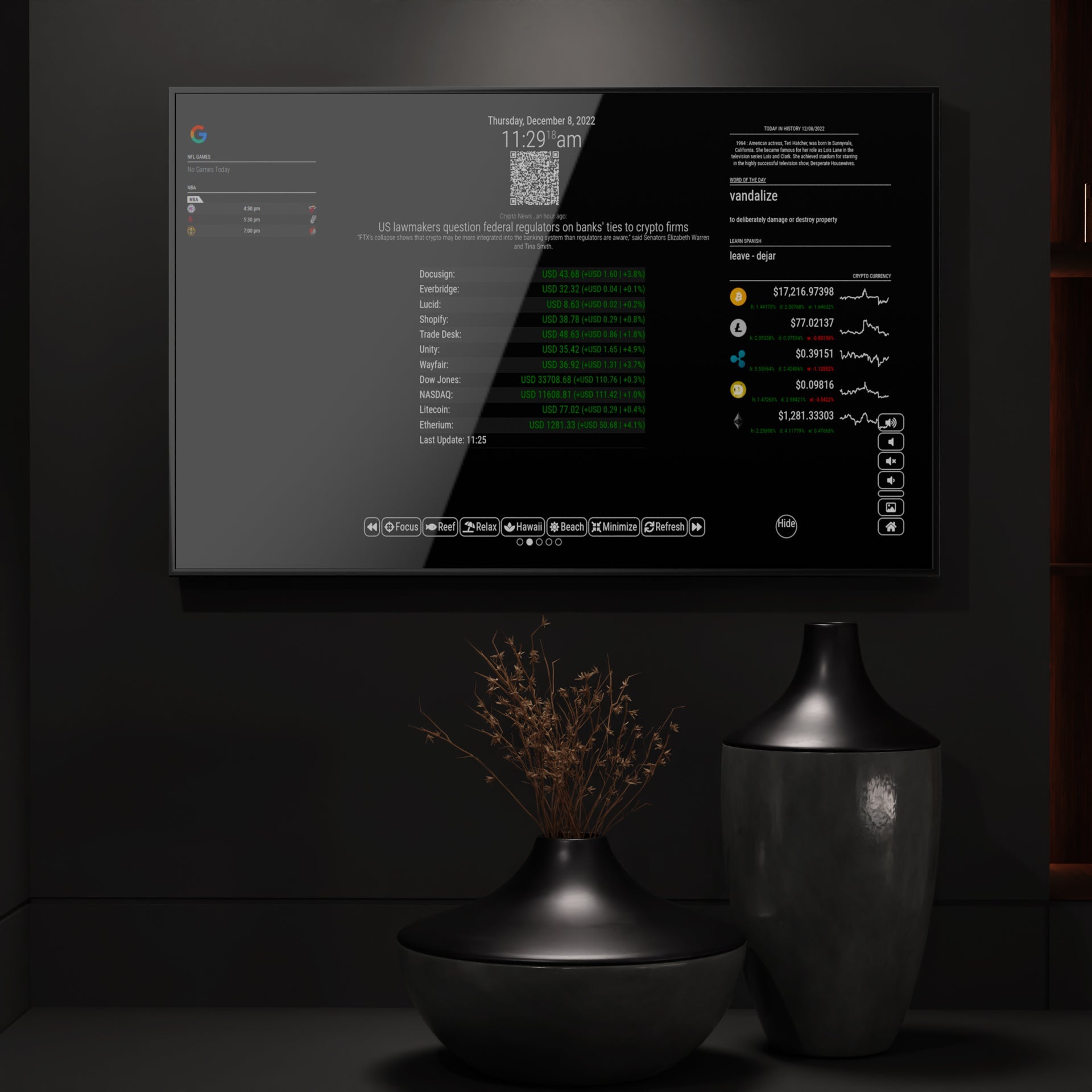• Motion sensor - plays looping video when motion is detected