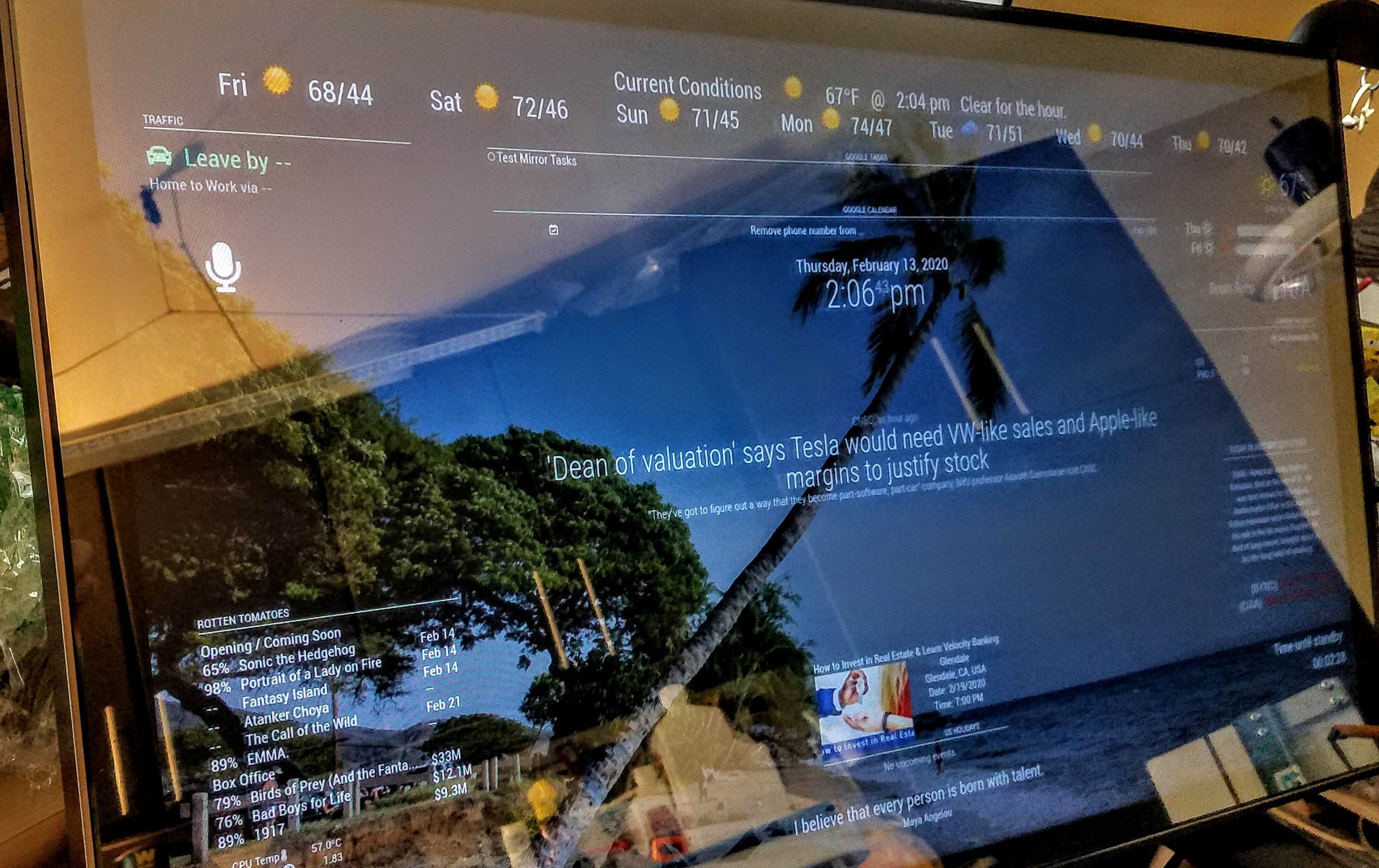 • The mirror still functions as a regular mirror, and your white text displays clearly over your reflection